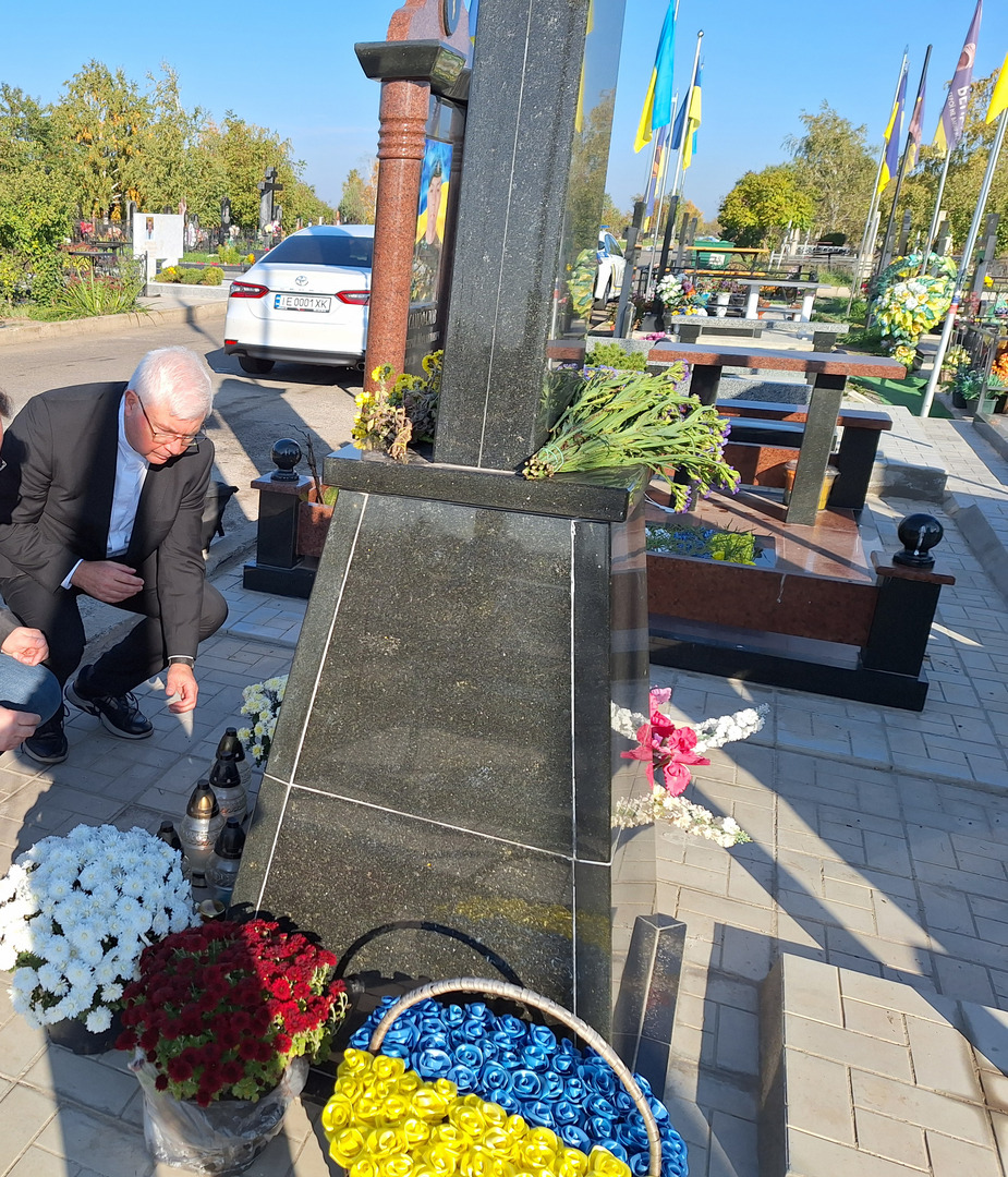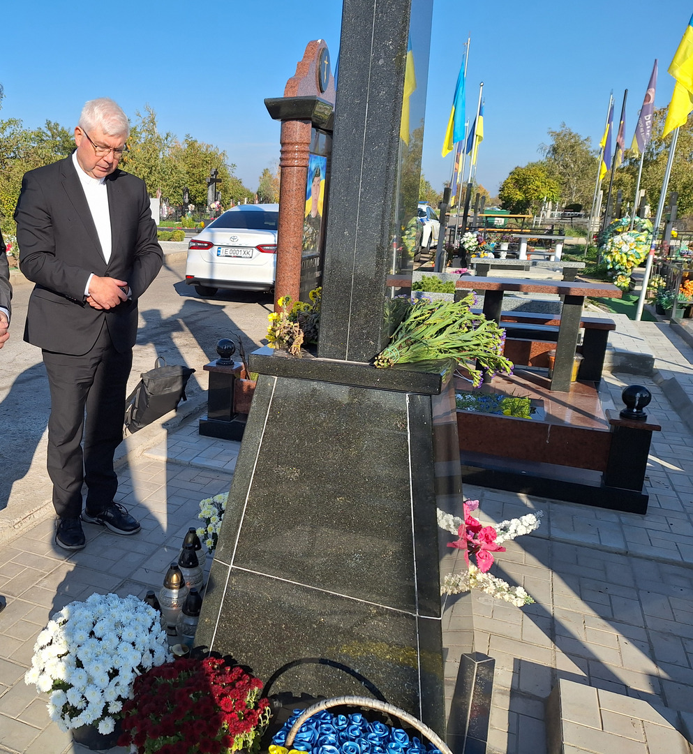 Unten: Kirchenpräsident Pastor Dr. Bernd Kuschnerus auf einem Soldatenfriedhof in Odessa.