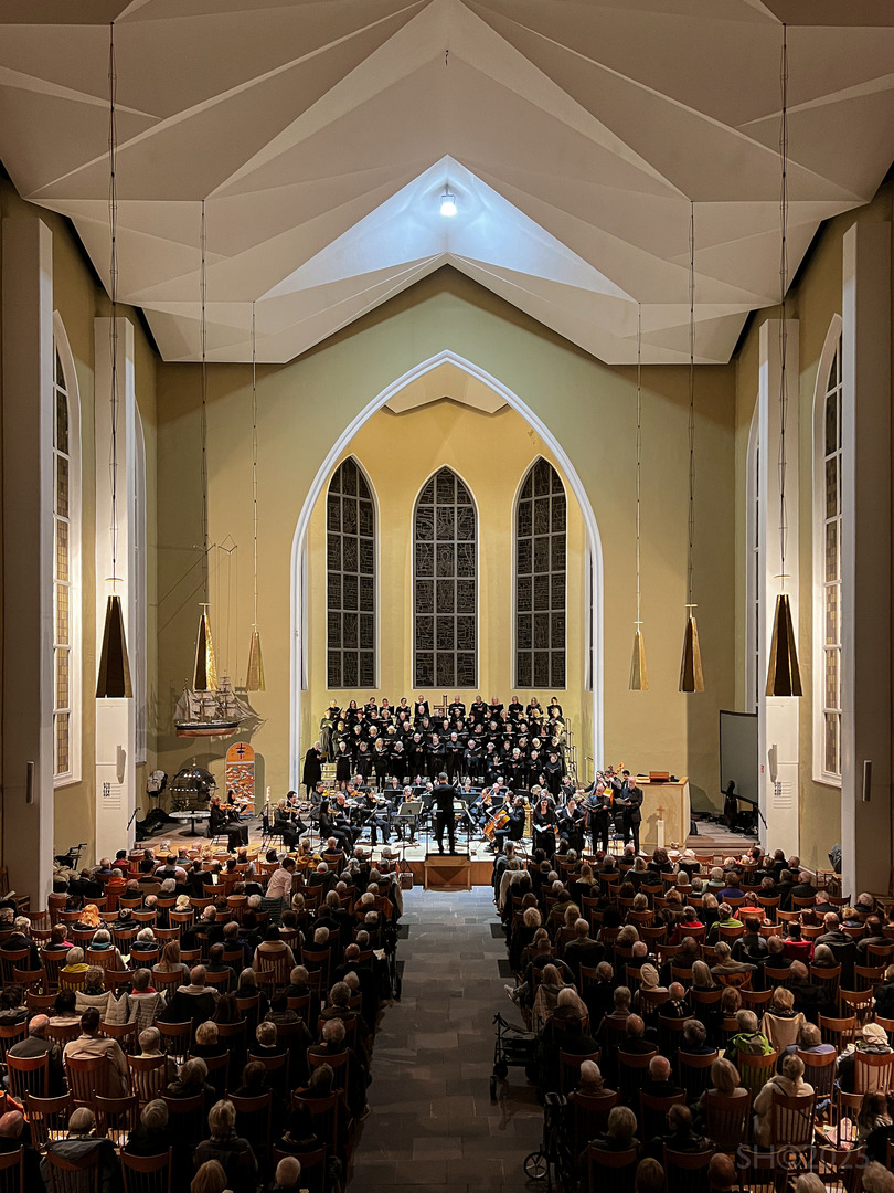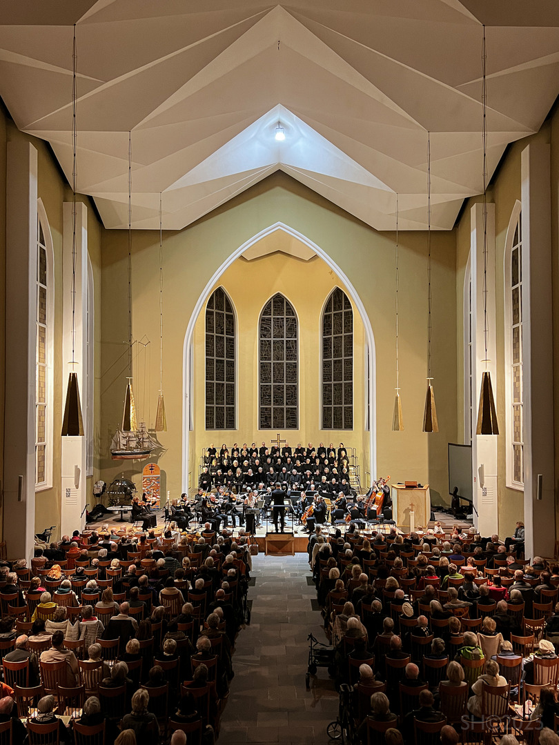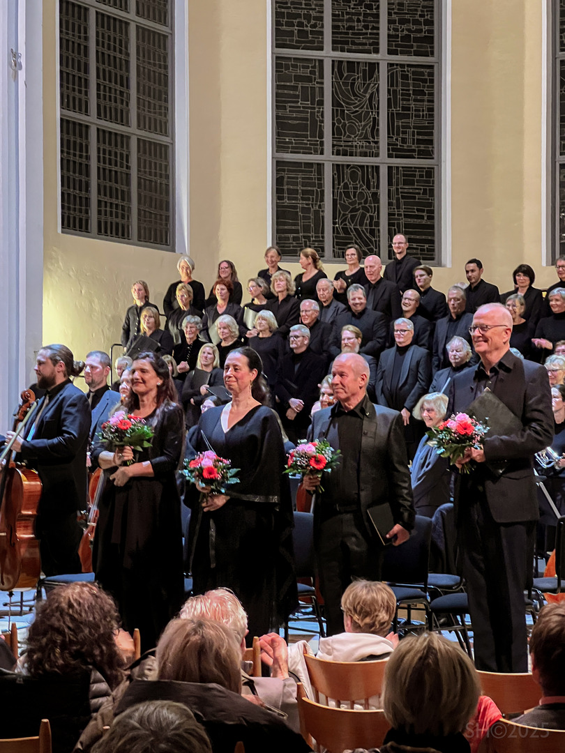 Im zweiten Teil folgte Haydns Harmoniemesse B-Dur. Unter der Leitung von David Schollmeyer ließen Bach-Chor, Solistinnen und Solisten sowie Orchester die Verbindung von Ernst und heiterer Zuversicht eindrucksvoll hörbar werden. Besonders berührend klangen das „Agnus Dei“ und das kraftvolle „Dona nobis pacem“. Das Publikum dankte mit langem und warmem Applaus.