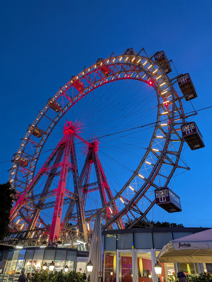 Nach dem Check-in im Hotel und einer kurzen Erfrischungspause machten wir uns zu Fuß auf den Weg zur Kaiserwiese beim Prater. Nach der langen Zugfahrt war ein Spaziergang genau das Richtige, um die Beine zu vertreten. Dort angekommen, wurden wir überrascht: Wir trafen auf ein bereits laufendes Open-Air-Konzert anlässlich des 200. Geburtstags von Johann Strauss. Zwar kamen wir etwas spät, aber die festliche Atmosphäre und die Musik sorgten dennoch für einen gelungenen ersten Abend. Wir nutzten die Gelegenheit, um gemeinsam im Grünen zu Abend zu essen.