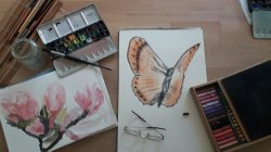 Aber die Freude am kreativen Schaffen siegte! So malen und zeichnen wir auch heute noch jeden Mittwoch jeweils das Motiv, das man sich selbst ausgesucht hat in der Technik, die man bevorzugt.