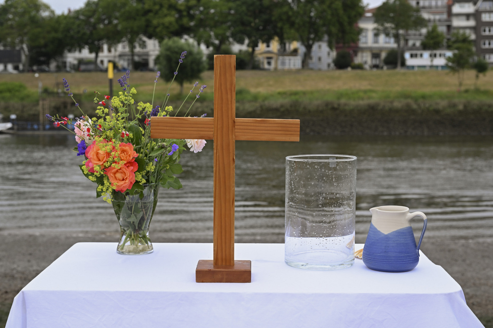 Tauffest unter freiem Himmel an der Weser (beim Café Sand)