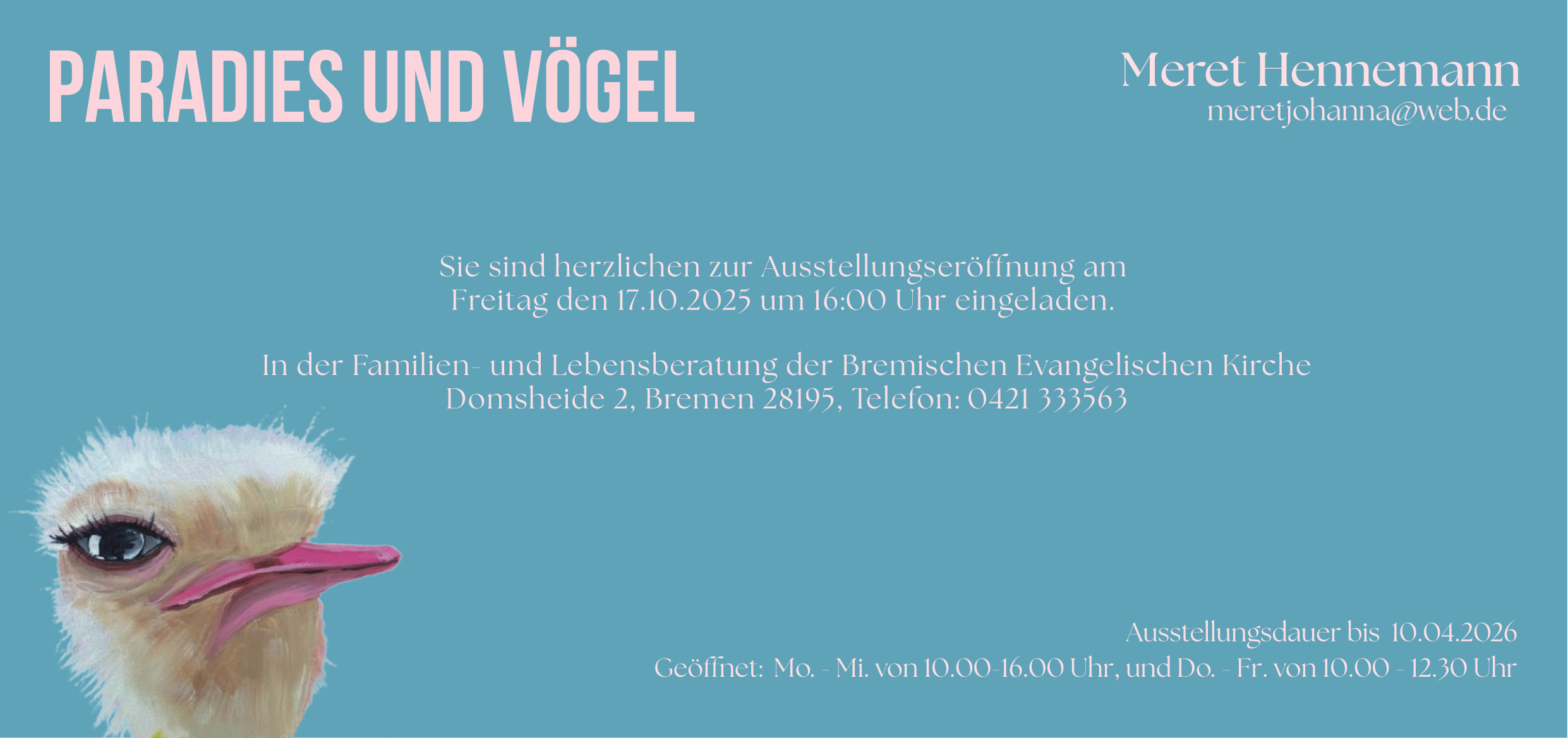 Herzliche Einladung zur nächsten Vernissage am Freitag, 17. Oktober um 16 Uhr:
