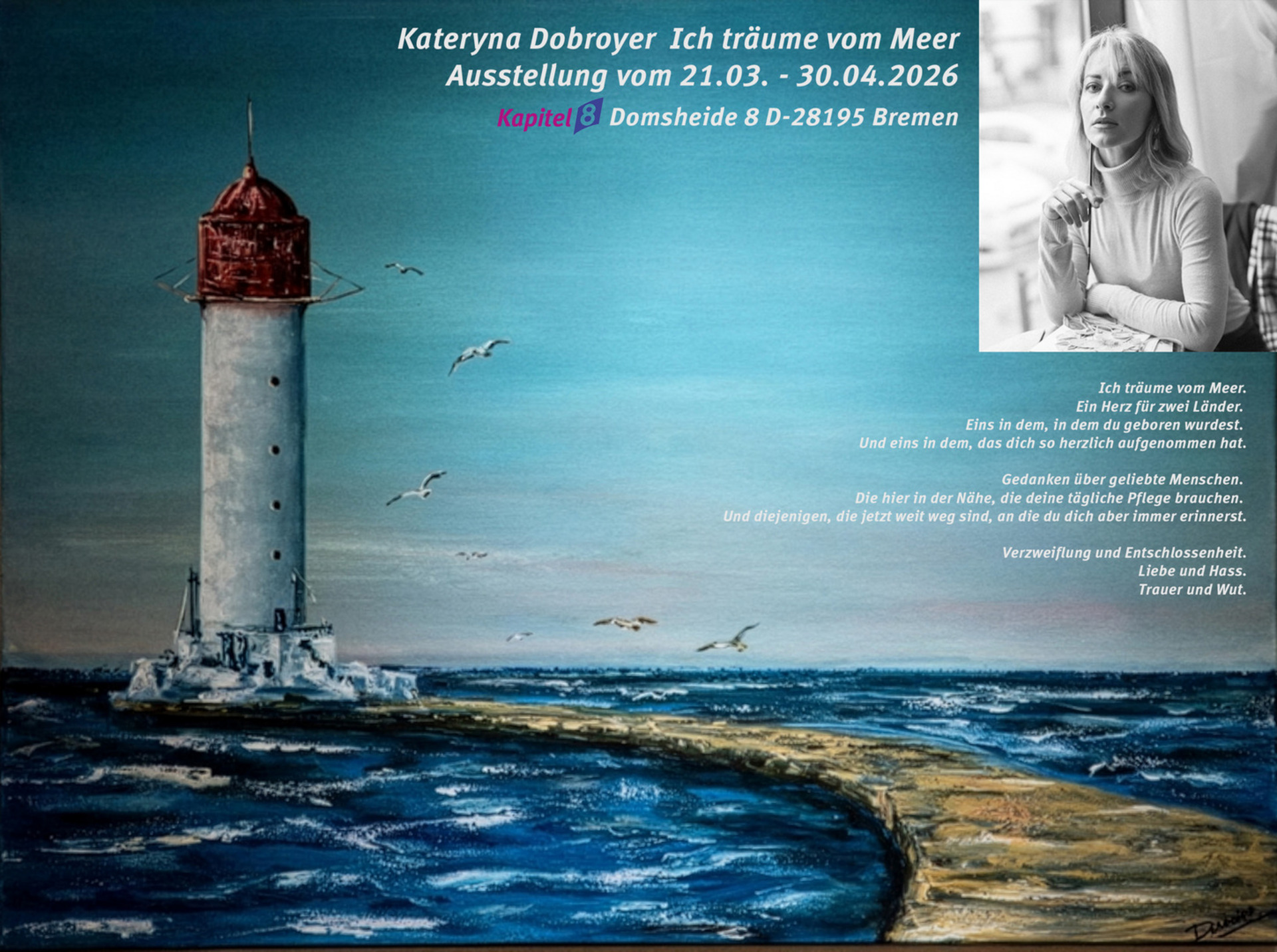 „Der Krieg teilt alles in zwei Hälften. Das Leben ‚vor‘ und ‚nach‘ der groß angelegten Invasion.“ Sagt Kateryna Dobroier, die in Odessa, in der Ukraine, geboren wurde und dort aufgewachsen ist. Sie sagt: „Jetzt drücke ich meine Gefühle, besonders meine Sehnsucht nach dem Meer, durch meine Kunst aus.“