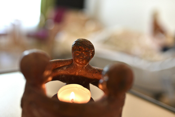 Mehrere kleine Kerzen leuchten, im Hintergrund ist es dunkel