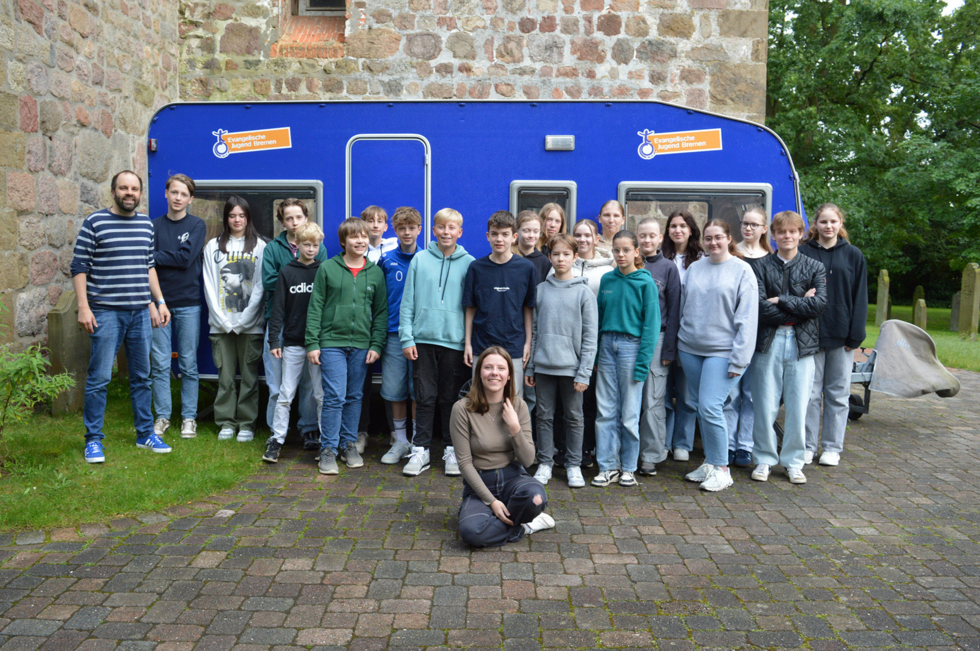 Im Wohnwagen neben der Kirche St. Martini in Lesum erwarten euch bei Kerzenschein spannende Geschichten zur Nacht.