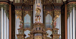 Das Bild zeigt eine Kirche mit einem hohen Turm und einem großen, bunten Banner, das eine Botschaft über Liebe enthält. Im Vordergrund stehen mehrere Autos, und im Hintergrund sind Bäume und ein weiteres Gebäude zu sehen. Der Himmel ist blau und klar.
