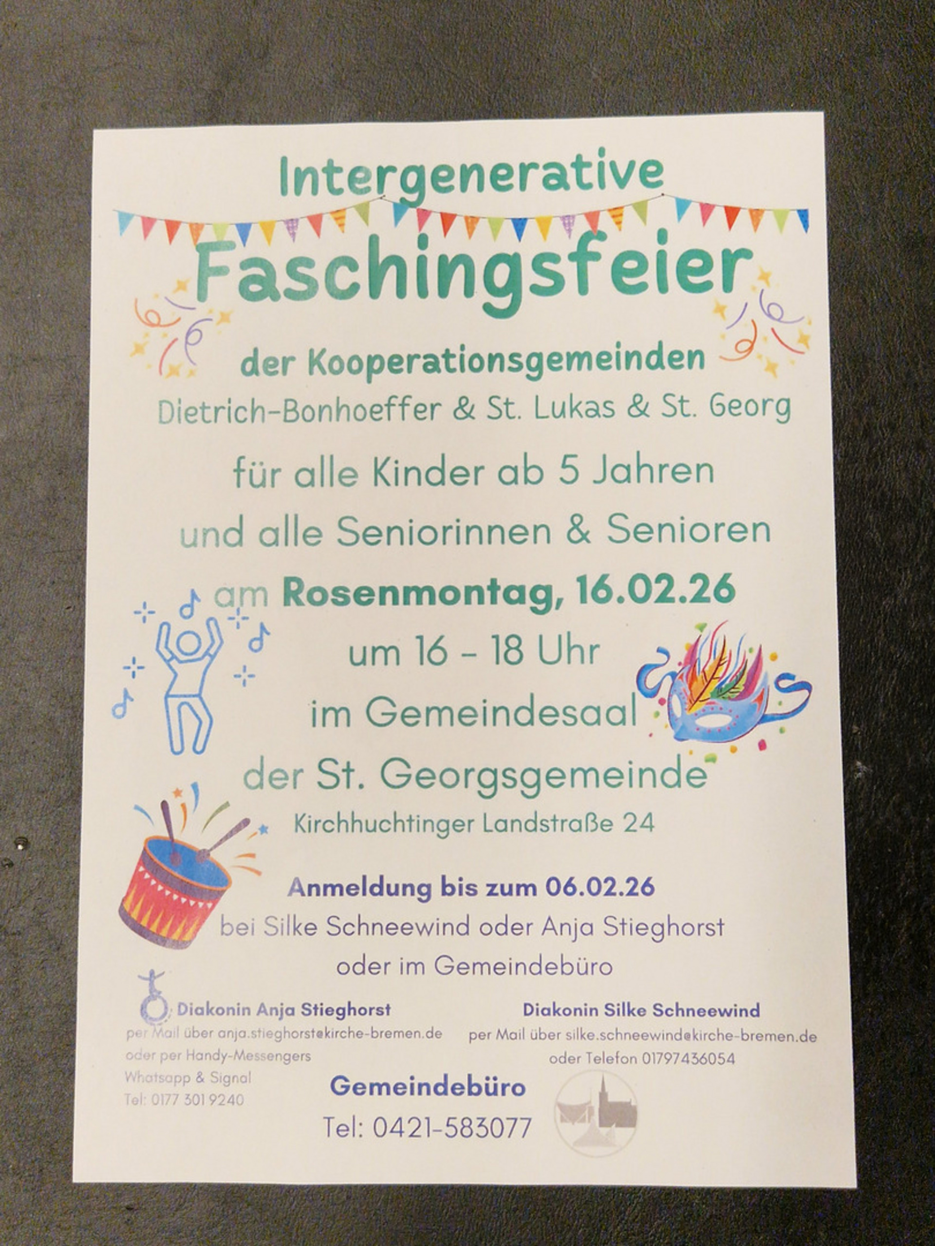 = FASCHINGSFEIER = Intergenerative Faschingsfeier der Gemeinden Dietrich-Bonhoeffer, St. Lukas und St. Georg