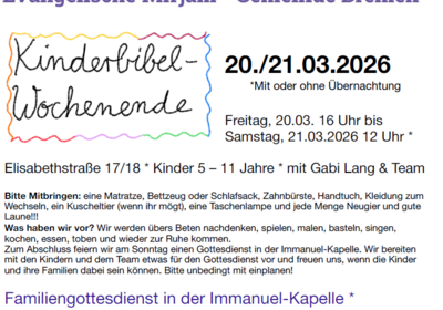 Ort der Veranstaltung: Vereinigte Ev. Gemeinde Bremen-Neustadt - Gemeindezentrum Zion | Theatersaal (barrierefrei)