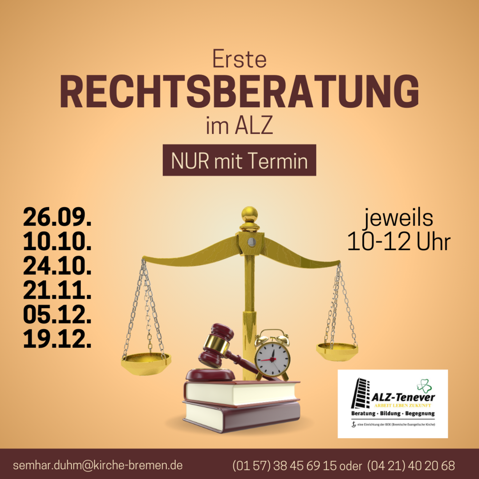 Die Rechtsberatung findet freitags von 10 Uhr bis 12 Uhr statt NUR mit Termin unter: