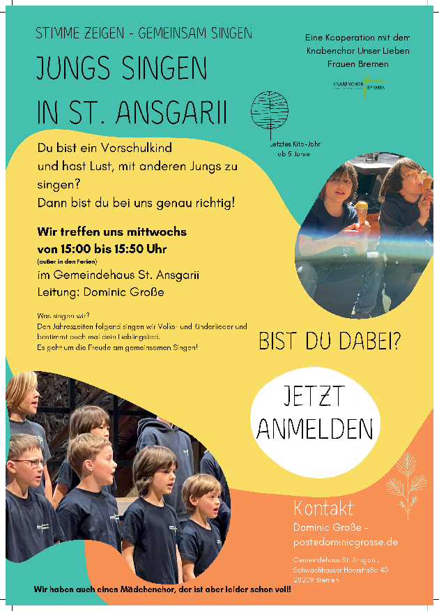 Du bist ein Vorschulkind und hast Lust, mit anderen Jungs zu singen?