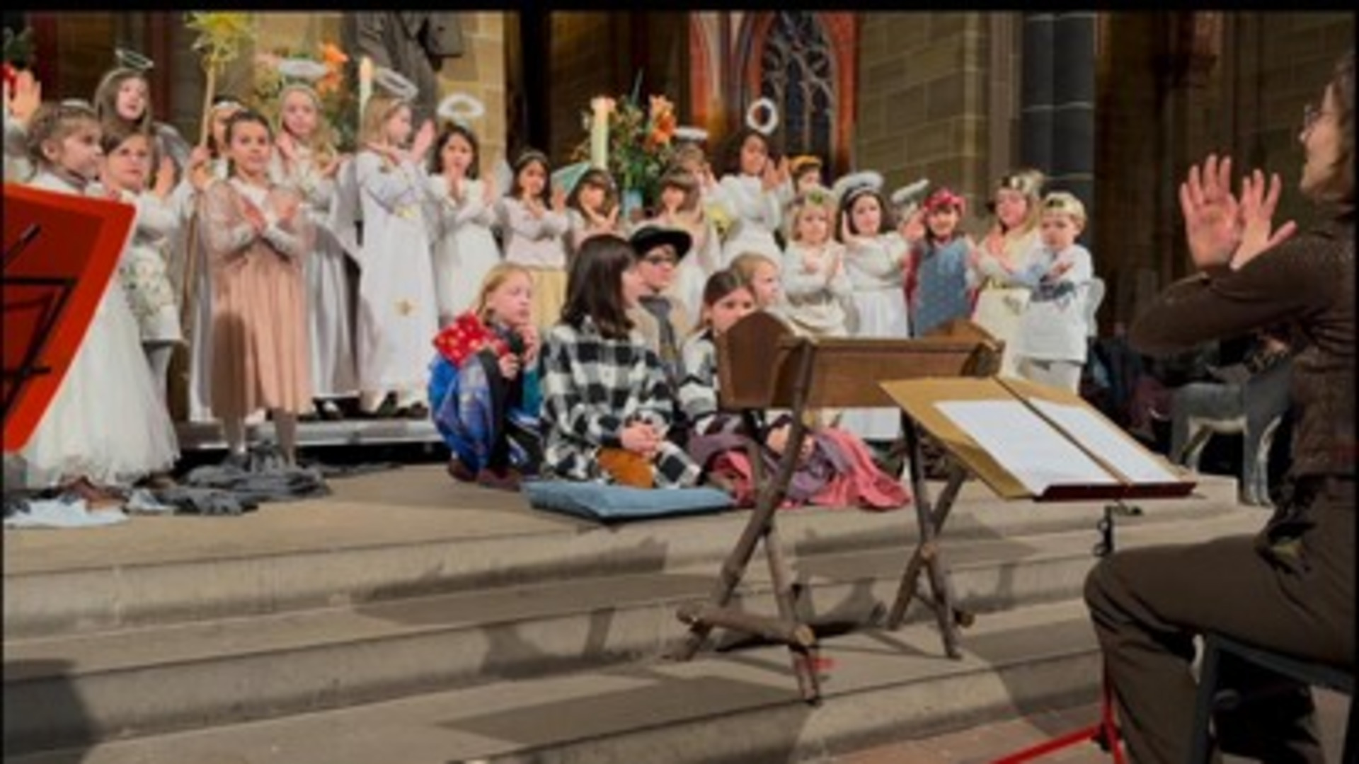 Familiengottesdienst für Familien mit Kindern jeden Alters, mit Krippenspiel und Gesang der Spatzenchöre.