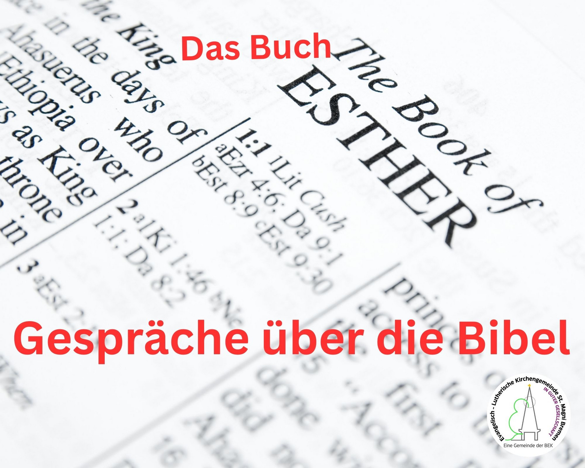 In diesem Jahr beschäftigen wir uns in unseren Bibelgesprächen mit Texten aus dem Buch Esther. Dabei nehmen wir die Anregungen der Ökumenischen Bibelwoche auf. Hintergrundinformationen zu den Texten, Bezüge zum eigenen Glauben und zur heutigen Zeit, sowie ganz unterschiedliche Methoden der Bibelarbeit erwarten die Teilnehmenden.