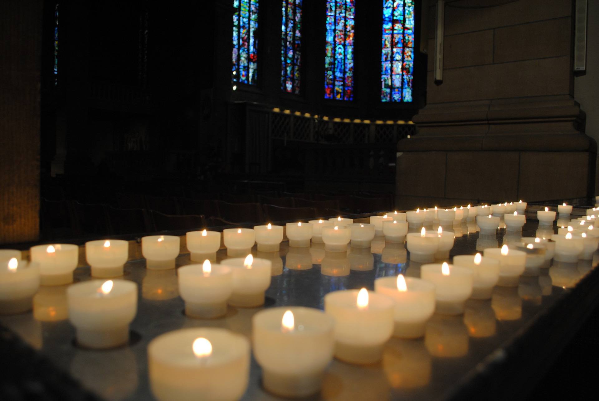 Mit Verlesen der Namen der Verstorbenen des letzten Jahres, für jeden wird eine Kerze angezündet.