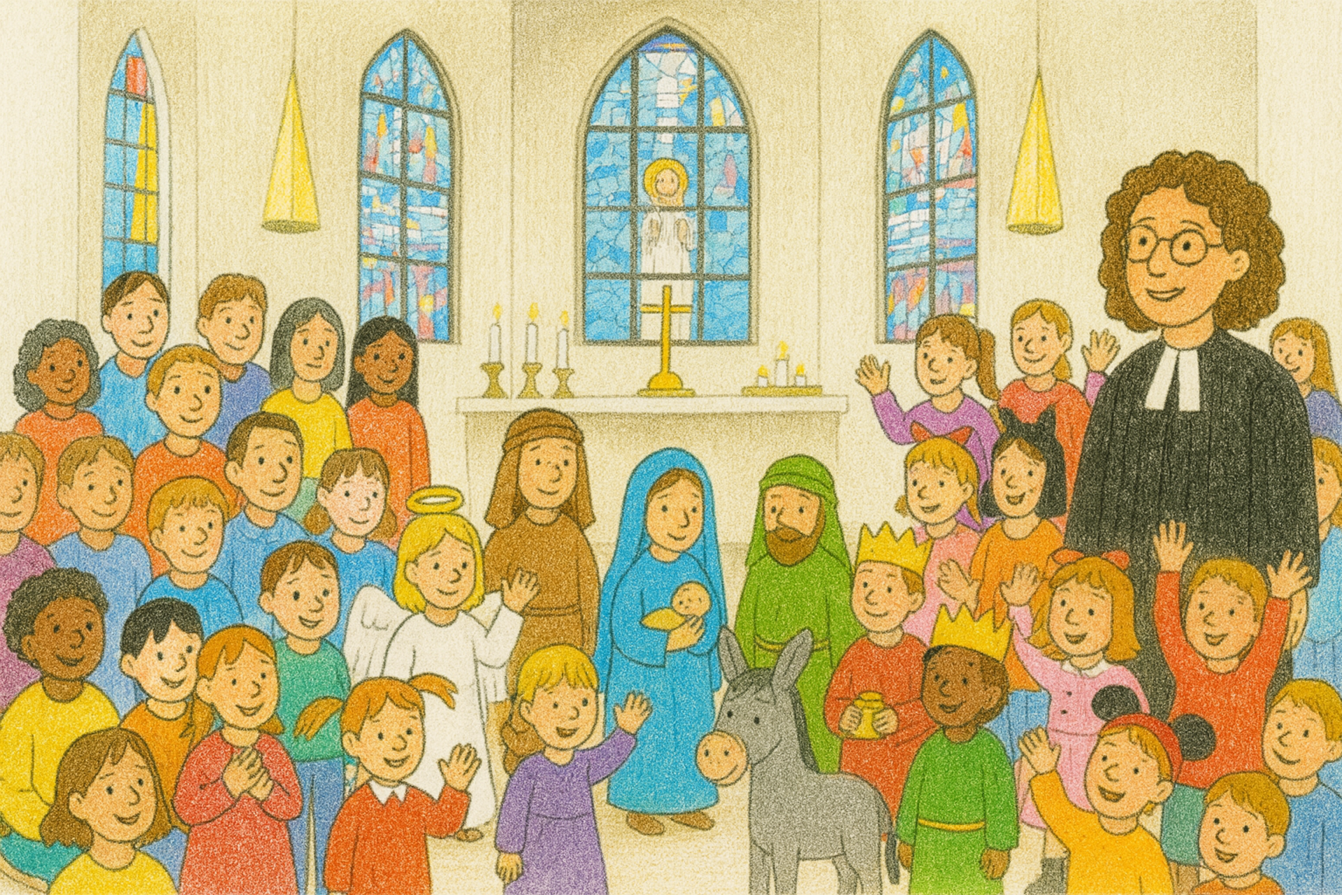 Jedes Jahr spielen die Konfirmand*innen uns die Weihnachtsgeschichte aus dem Lukas-Evangelium. Und seit ein paar Jahren können alle Kinder, die mögen, mitspielen: Ob als Hirte oder Engel, Prinzessin oder Fledermaus, Pippi Langstrumpf oder Kamel oder... oder... oder... verkleidet: Weihnachten ist für alle - und so richtig kann man es erst verstehen, wenn man mal selbst dabei war! Wir spielen und singen die bekannten Weihnachtslieder und freuen uns über Jesu Geburt. Am Ende sind alle eingeladen, Fotos vom bunten Geschehen zu machen. Herzlich willkommen!