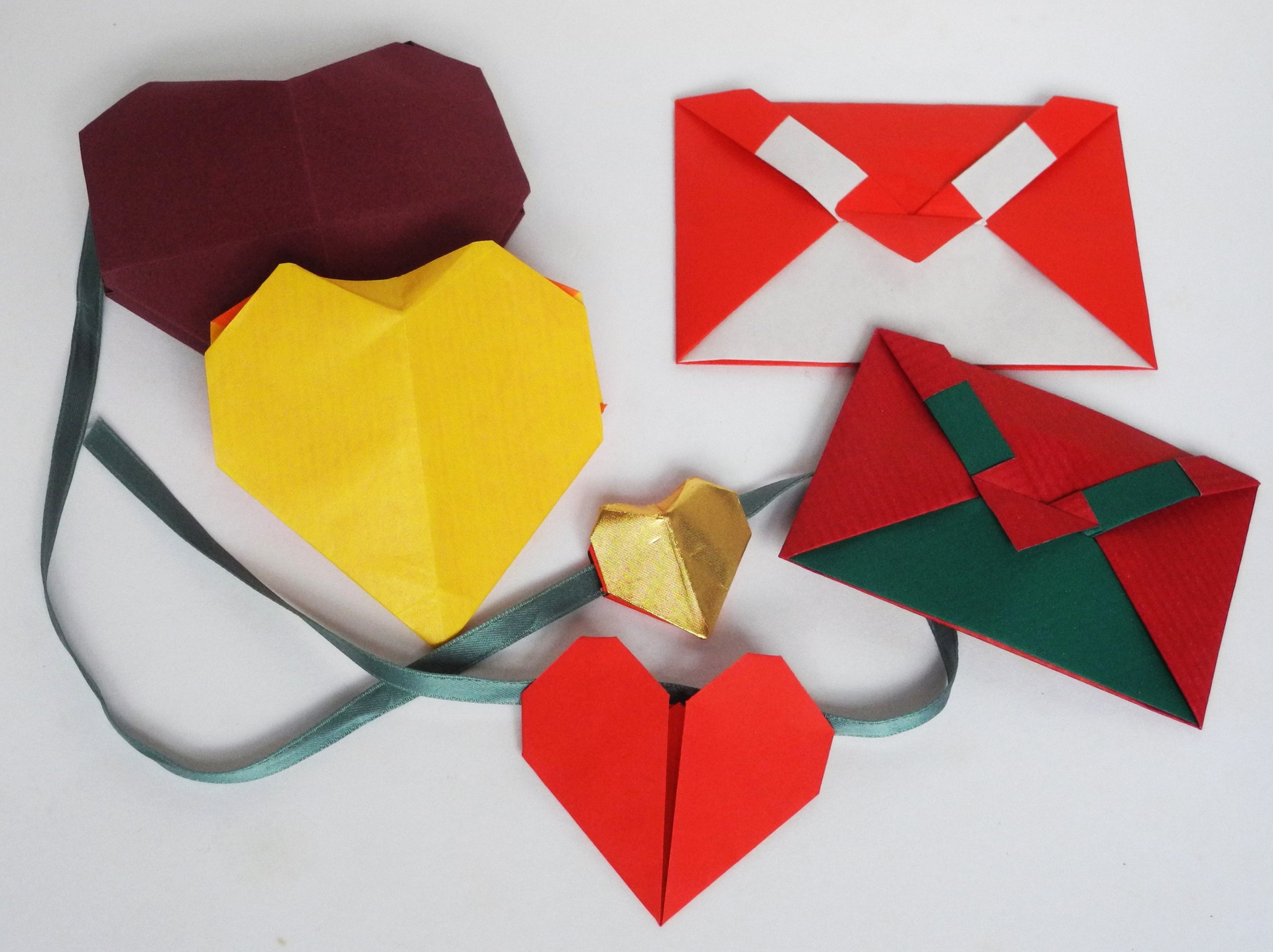 Wir falten ein Herzbriefkuvert und eine doppelseitige Herz-box