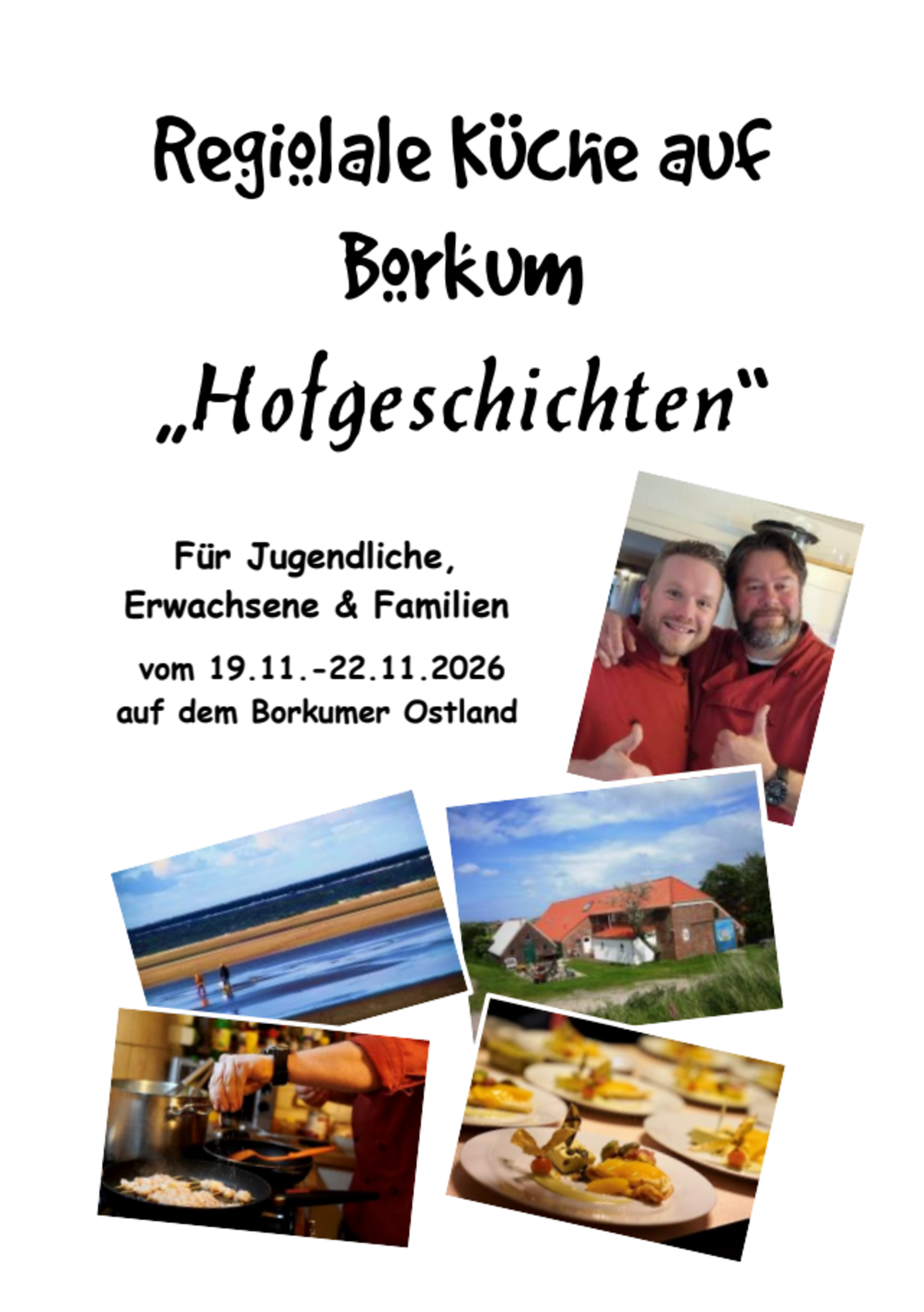 Viele Gerichte, der norddeutschen Küche sind echte Klassiker -andere Rezepte fallen uns eher nicht als erstes ein. In beiden Fällen stellt sich aber vielfach die Frage: „Wie wird das denn eigentlich zubereitet??“ Unter Anleitung von echten Borkumer Profiköchen, wollen wir ein langes Wochenende lang viel ausprobieren, Tricks und Kniffe lernen und dann alles gemeinsam genießen! Und Zeiten für Insel, Strand & Meer und ein gutes Miteinander am Abend gibt’s natürlich auch…