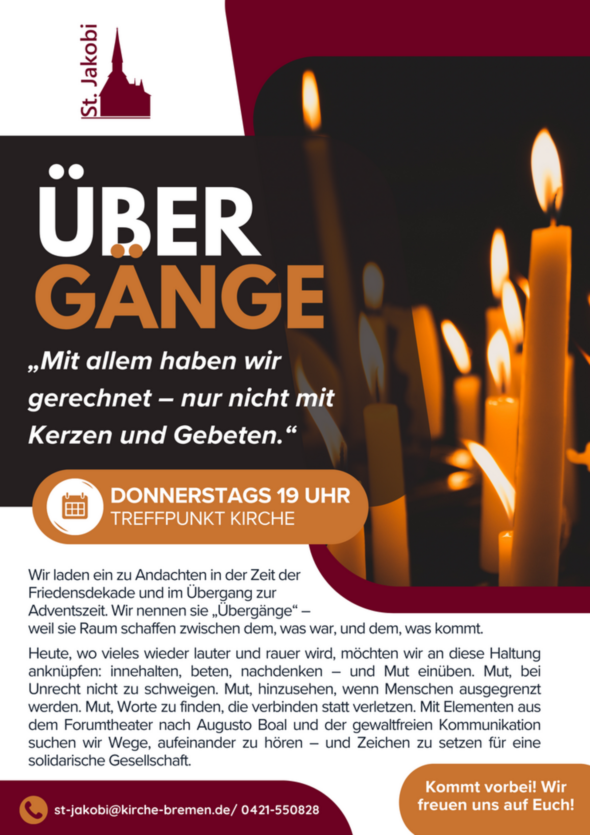 Ort der Veranstaltung: Ev. Gemeinde St. Jakobi - Kirche, Beginn in der Kirche ggf. im Saal | Kirchweg 55 - 57, 28201 Bremen